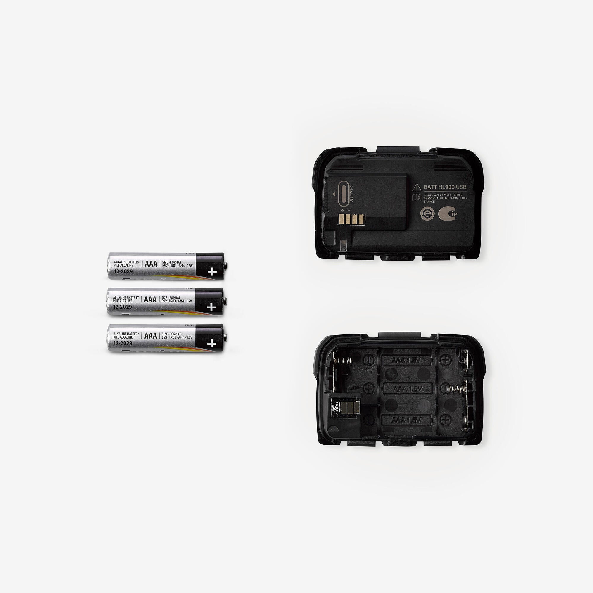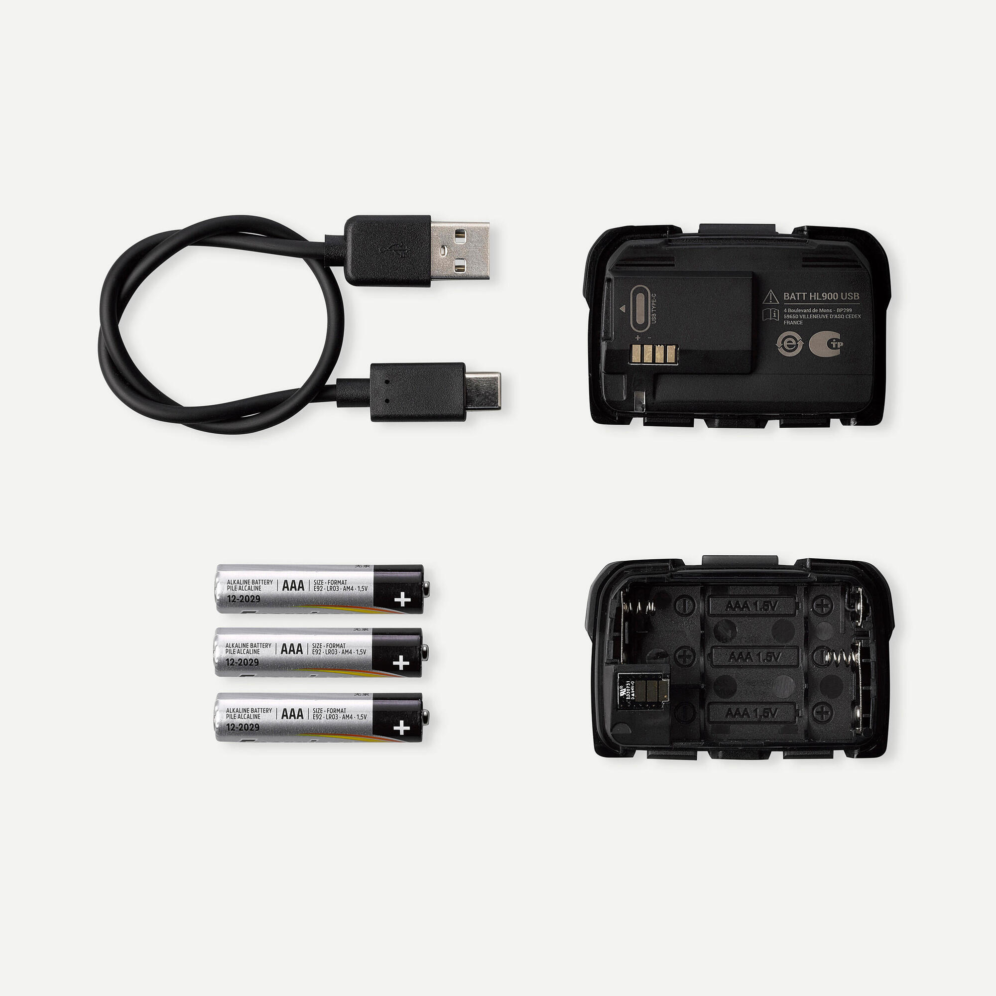 50 hours in eco, 15 hours in medium, 3 hours in Power mode. USB-C rechargeable battery